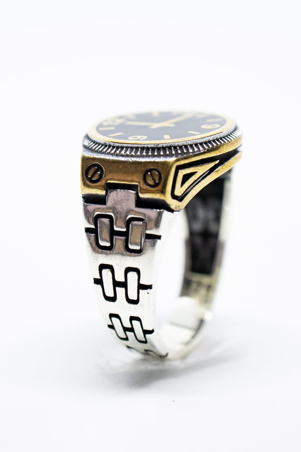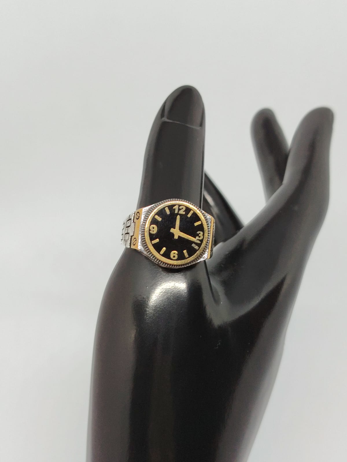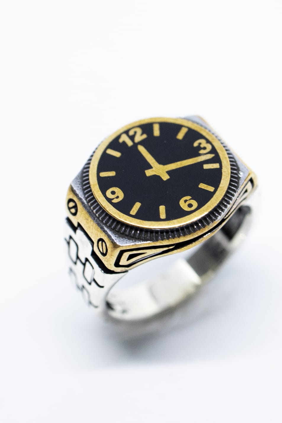 Questo anello da uomo, con quadrante decorativo effetto orologio, unisce carattere, eleganza e una presenza decisa al primo sguardo. Il contrasto tra il nero profondo del quadrante e i dettagli dorati crea un equilibrio iconico, forte e senza tempo.