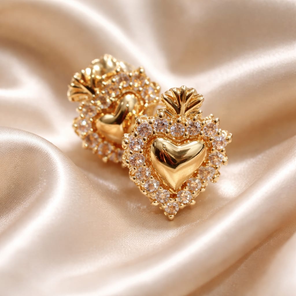 Orecchini Cuore con Corona e Pavé di Zirconi